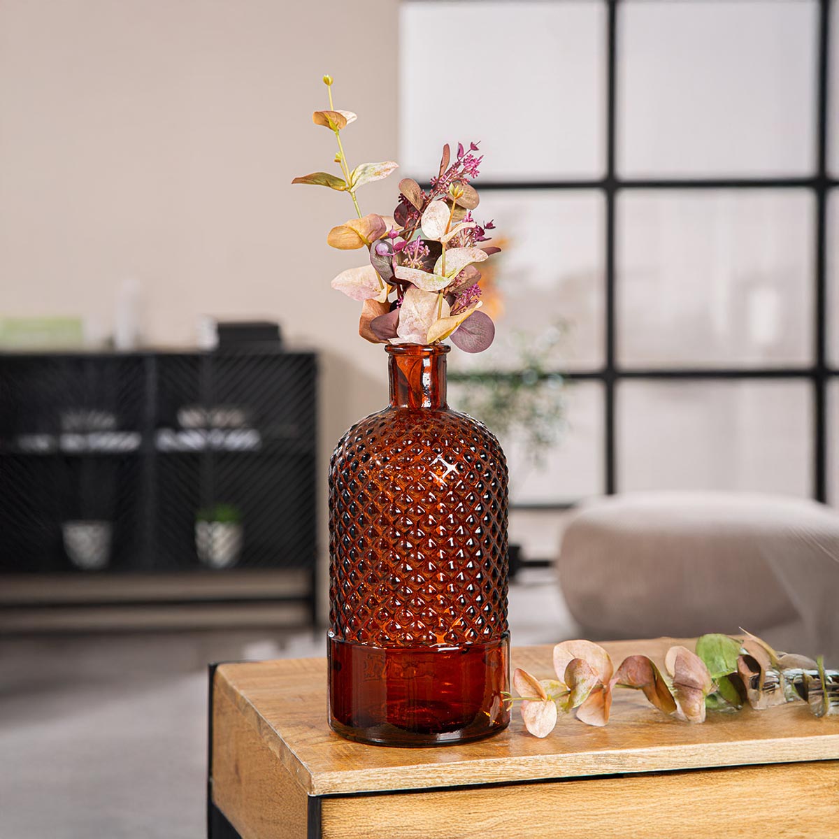 Elegantní skleněná váza Diamond v hřejivém hnědém tónu je stylovým doplňkem každého interiéru. Díky unikátní diamantové struktuře povrchu, která krásně odráží světlo, působí jako umělecký dekorativní prvek. Váza je vhodná jak pro výrazné aranžmá, tak samostatně jako designový kus.